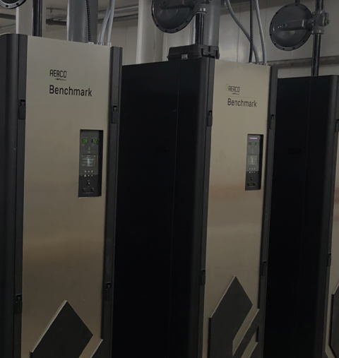 The school’s existing system had previously been powered by a firetube steam boiler that provided heat to entrance ways, classrooms and perimeter heating. Although the system was meeting the building’s fundamental need of heat, it was far from efficient. The boiler was non condensing and non-modulating, and due to cycling and standby losses, the overall operating efficiency was between 50-60%.
