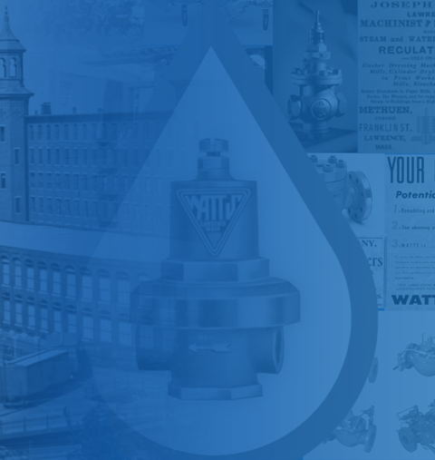 In 1874, English immigrant Joseph E. Watts opened an independent machining shop in Lawrence, MA, Watts Regulator Company, supplying parts and fittings to local textile mills.