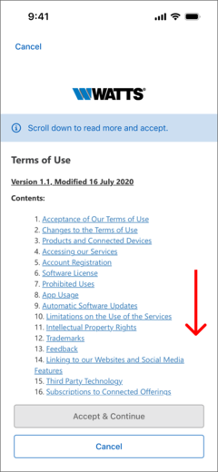 - Scroll through the Terms of Use and select "Accept & Continue" button