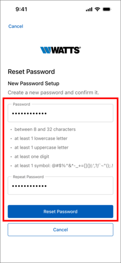 - Enter your new password and repeat password
