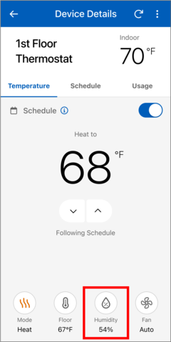 - Select the "Humidity" button on the Device Details page
