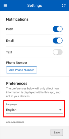 The app offers three appearance options: Light, Dark, and System. When System is selected, the app will automatically match your mobile device's appearance settings.