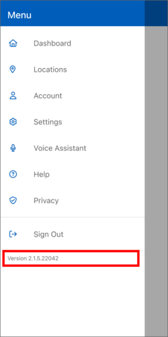 - The software version is displayed below the Sign Out option in the popout menu