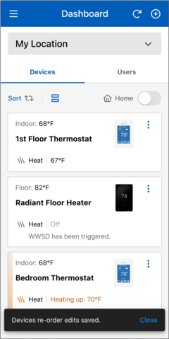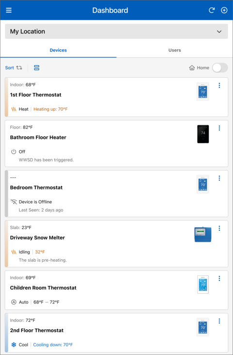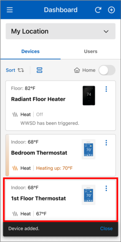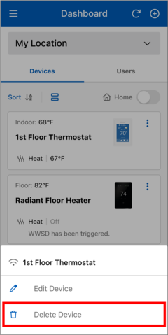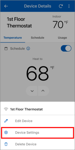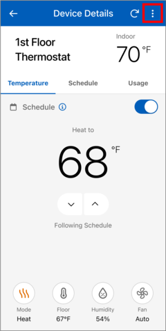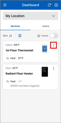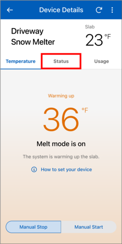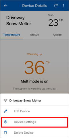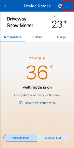 - In the Watts Home app, go to the snow melt control's Device Details page