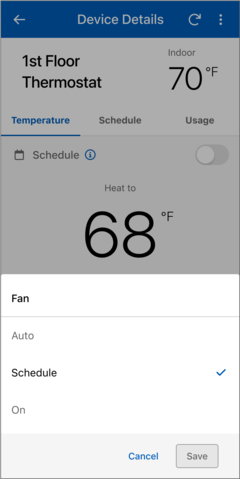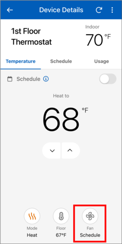 - Select the "Fan" button on the Device Details page