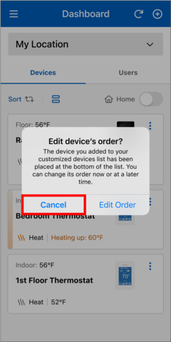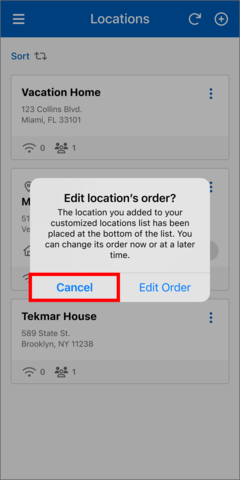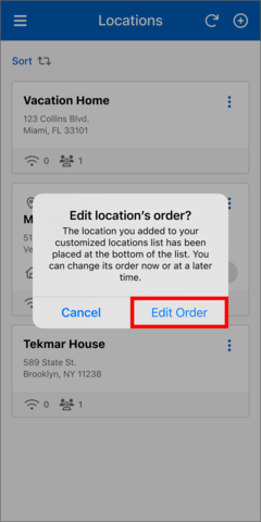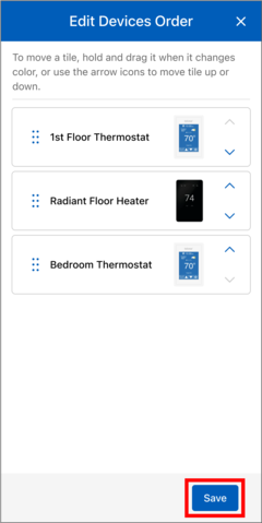 - On the "Edit Locations Order" page to move a location tile, press and hold until it changes color, then drag and drop it to your desired destination. Alternatively, you can use the arrow icons to move it up or down.
