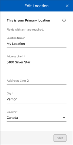 - Enter the location's information. With "Standard Order" selected, you can make this the primary location that is shown when the app opens
