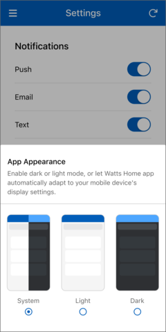 - Push – Messages from the Watts Home app on your mobile phone