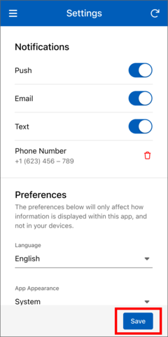 - Text – Messages will be sent to your mobile phone number