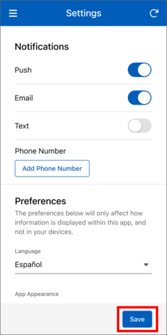 - Select your preferred app appearance from the bottom menu