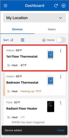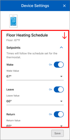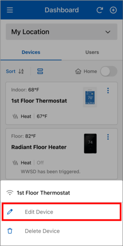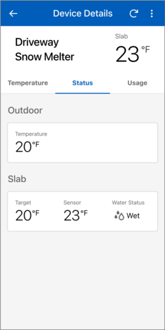 - In the Watts Home app, go to the snow melt control's Device Details page