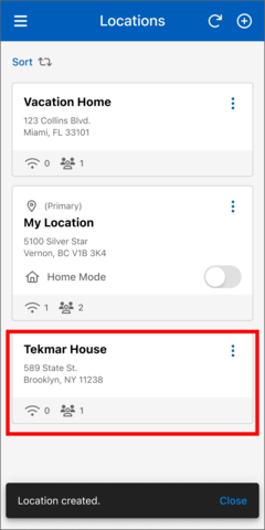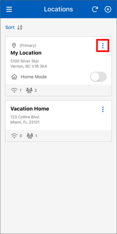 - Select "Sort" button on the Locations page
